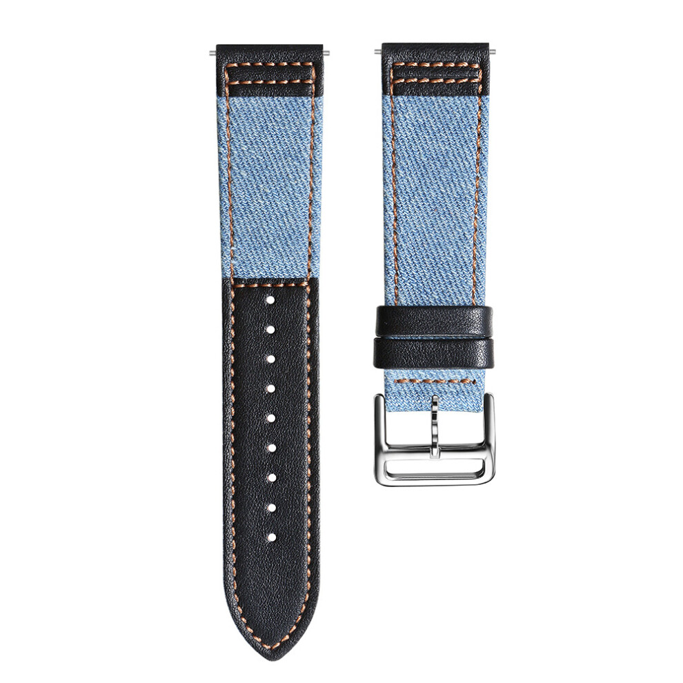 (23mm Light Black) Casual Leather and Denim Canvas Watch Band for Fitbit Versa 2 Smartwatch - Fitbit Watch Band