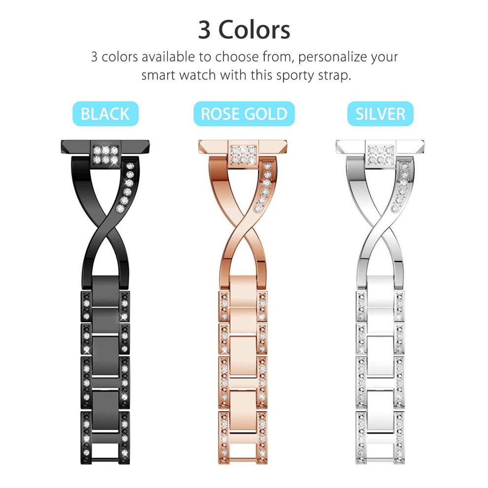 Adjustable Size Fitbit Watch Band, Zinc Alloy Metal Bling Strap for Versa 2 Versa Lite, Rhinestone Jewelry Replacement Bracelet with Comfort Fit, Easy