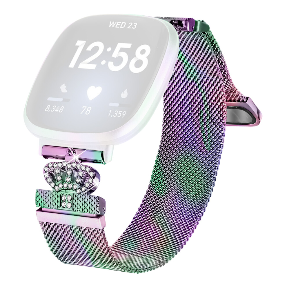 (Multi-color) For Fitbit Versa 3 / Fitbit Sense Milanese Band Magnetic Crown Clasp Stainless Steel Strap