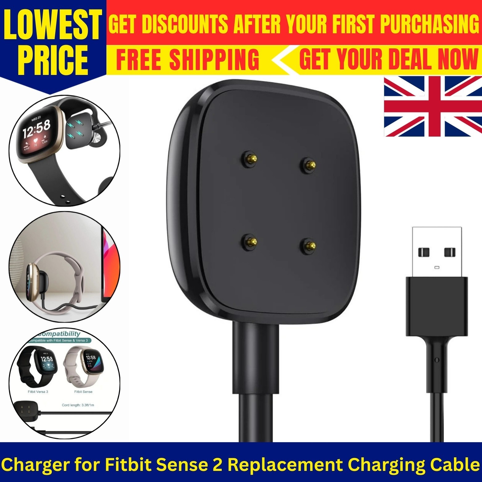 USB Charging Lead Dock Cable for Fitbit VERSA 2 Watch, Fitbit Versa 2 Charger UK