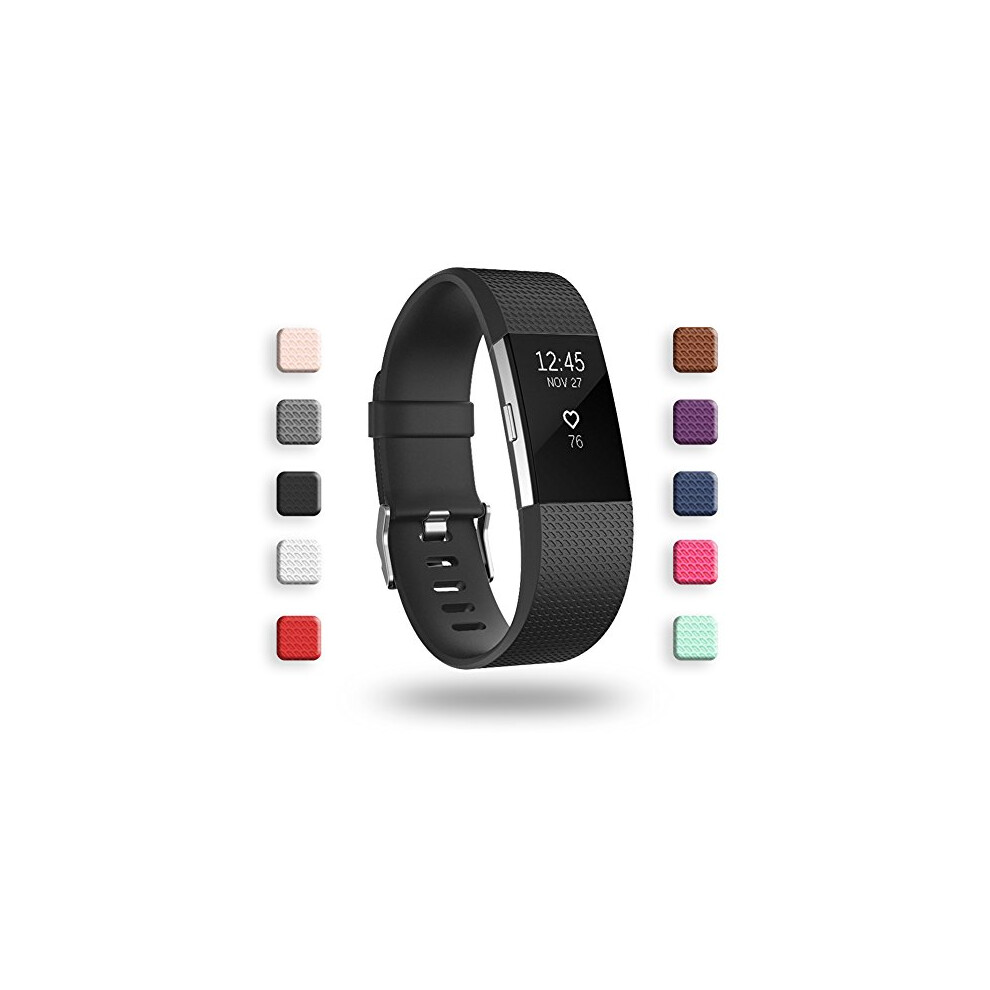 Silicone Adjustable Bands, Non-toxic Materials Waterproof Classic Style Ergonomic Design for Fitbit Charge 2, Women Men (Large)