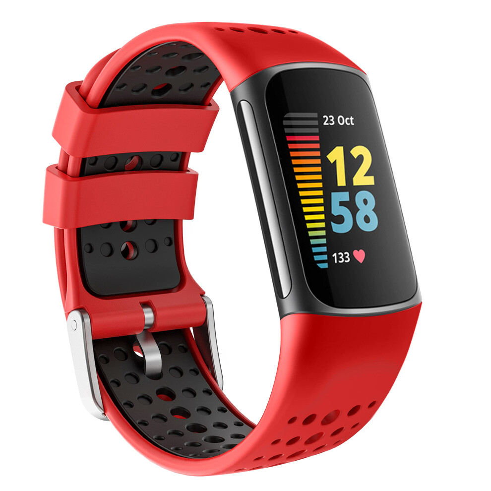 Breathable Sport Silicone Strap Double Color Replacement Bands for Fitbit Charge 5 for Men and Women