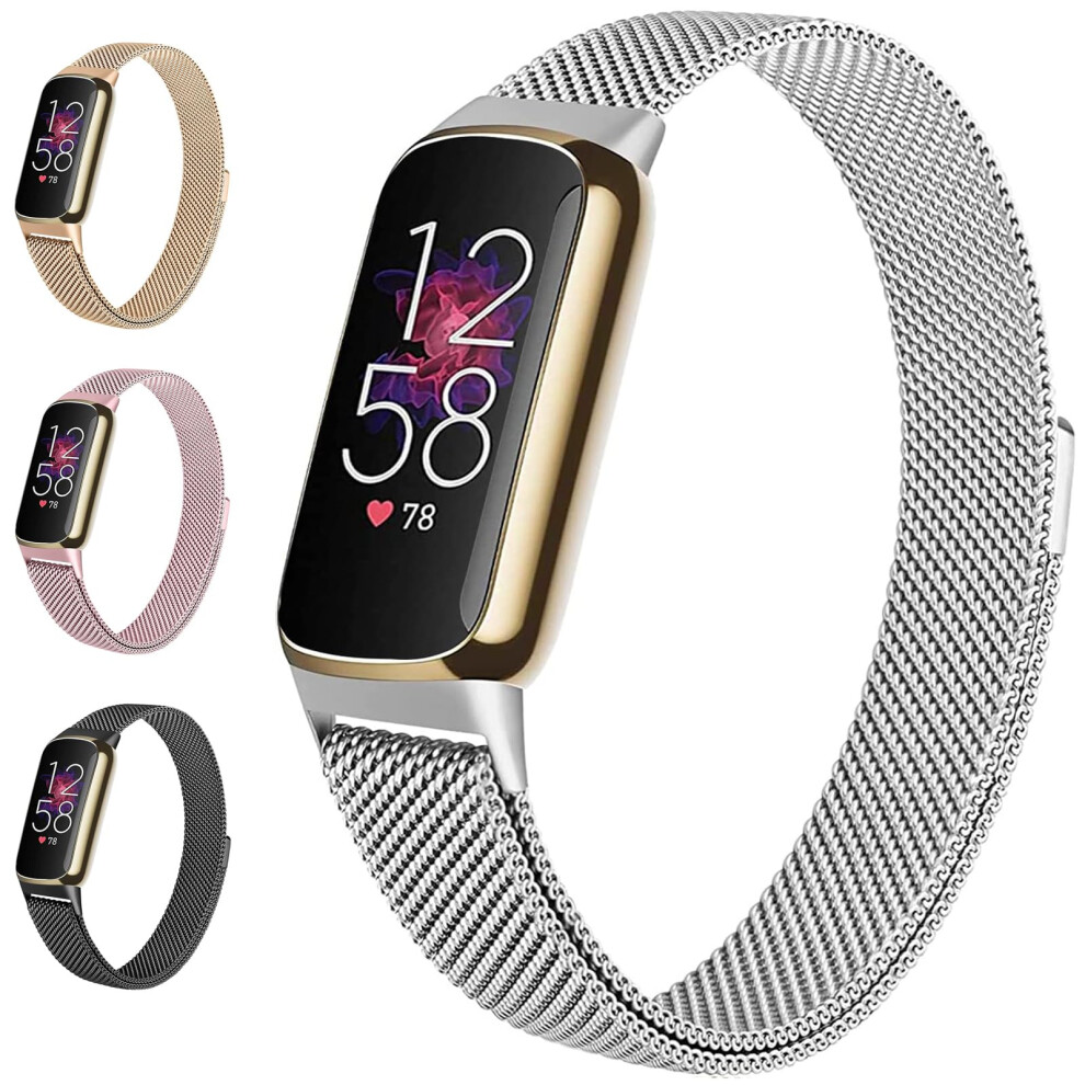 Stainless Steel Mesh Band Silver Adjustable Replacement Strap for Fitbit Luxe Women and Men