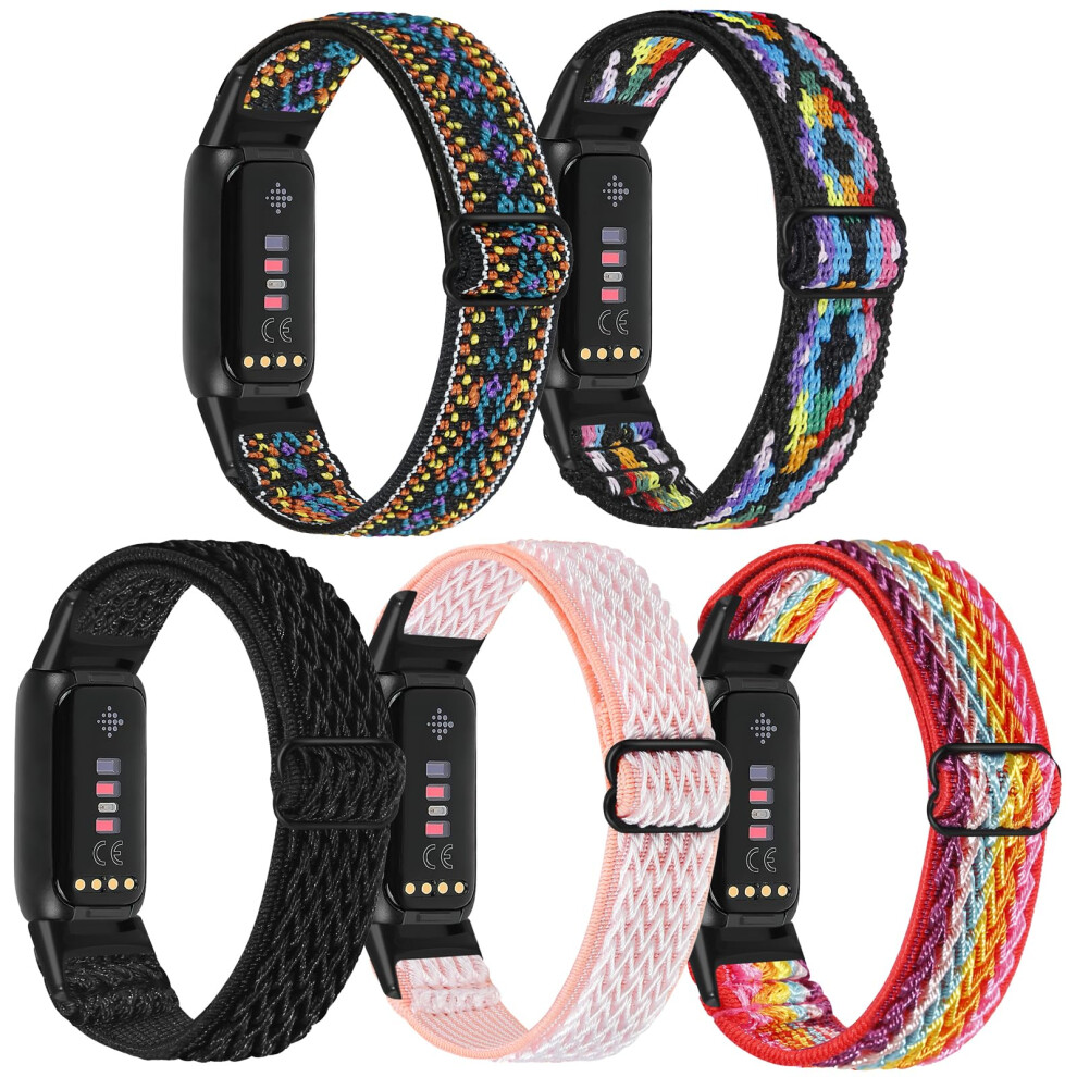Adjustable Braided Bands 5 Pack Soft Elastic Sport Strap Replacement for Fitbit Luxe Women and Men