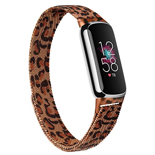 Metal Strap for Fitbit Luxe Strap for Women, Premium Stainless Steel Metal Replacement Band with Strong Magnet (Leopard)