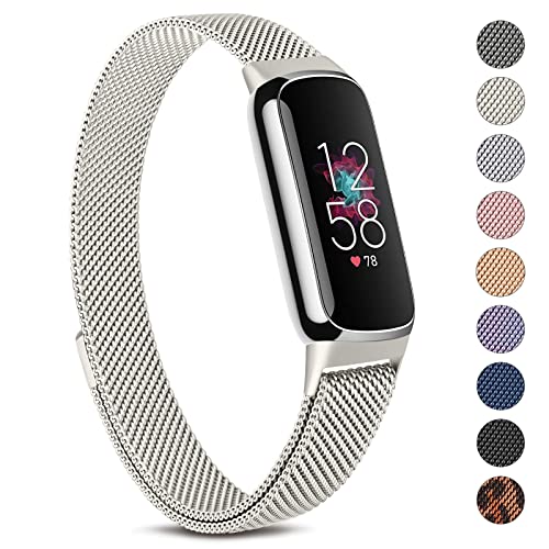 Metal Strap for Fitbit Luxe Strap for Women, Premium Stainless Steel Metal Replacement Band with Strong Magnet (Starlight)