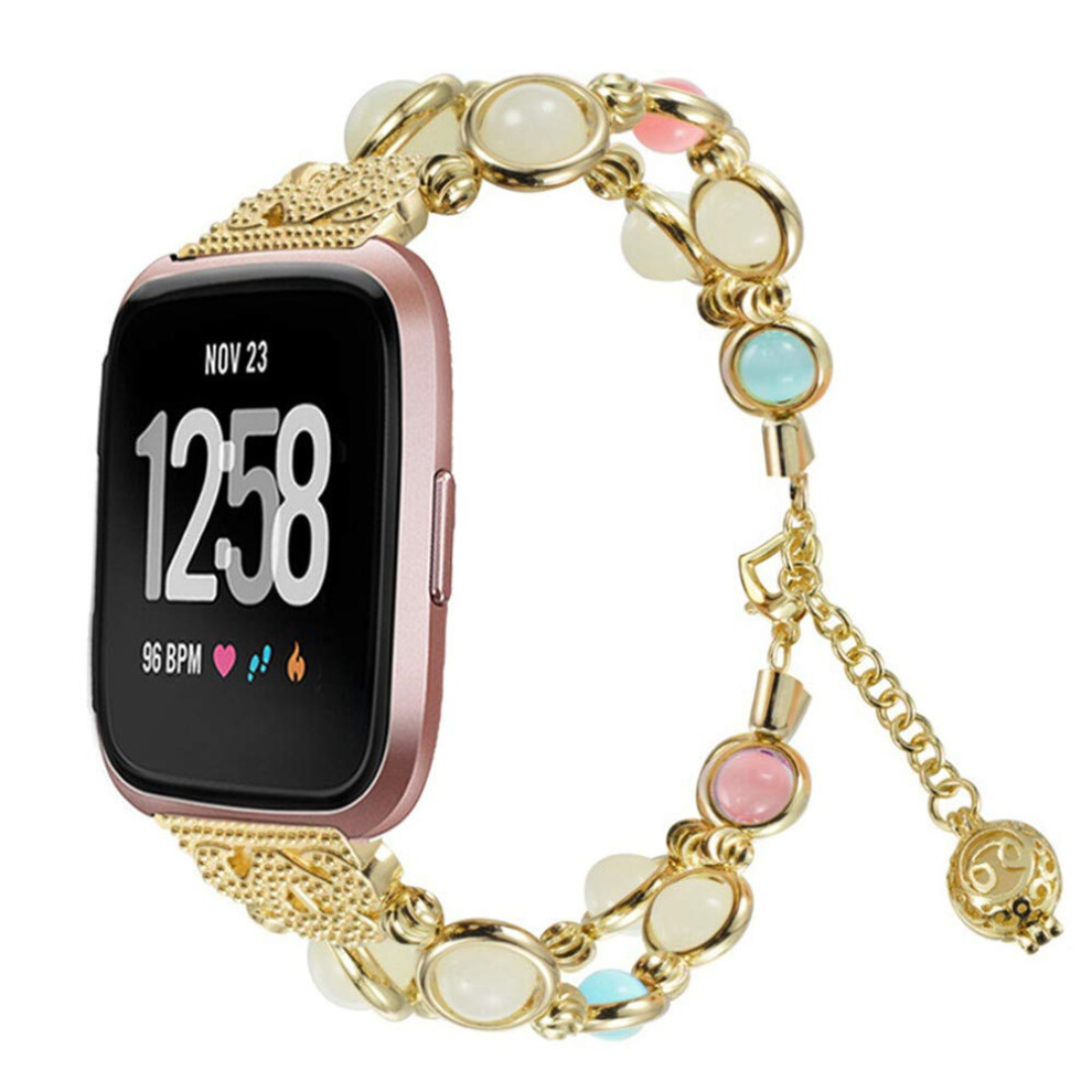 Strap for Fitbit Versa 2 Gold Handmade Faux Pearl Bracelet Style with Night Luminous Accent for Women
