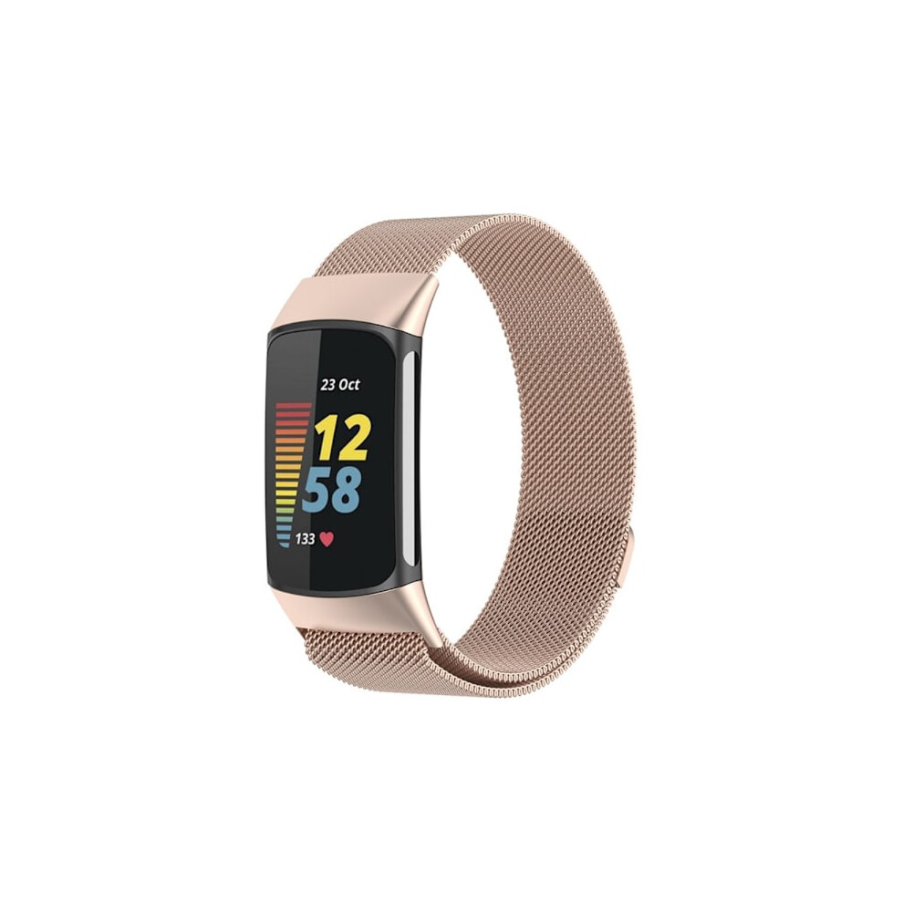 (Rose Gold) For Fitbit Charge 6/Charge 5 Milanese Loop Band Metal Stainless Steel Magnet Strap