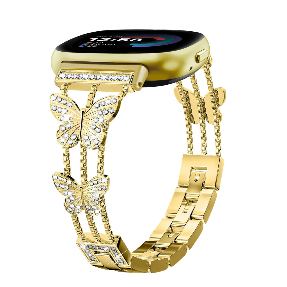Luxury Gold Rhinestone Butterfly Bracelet Band for Fitbit Versa 4 and Sense 2 Women