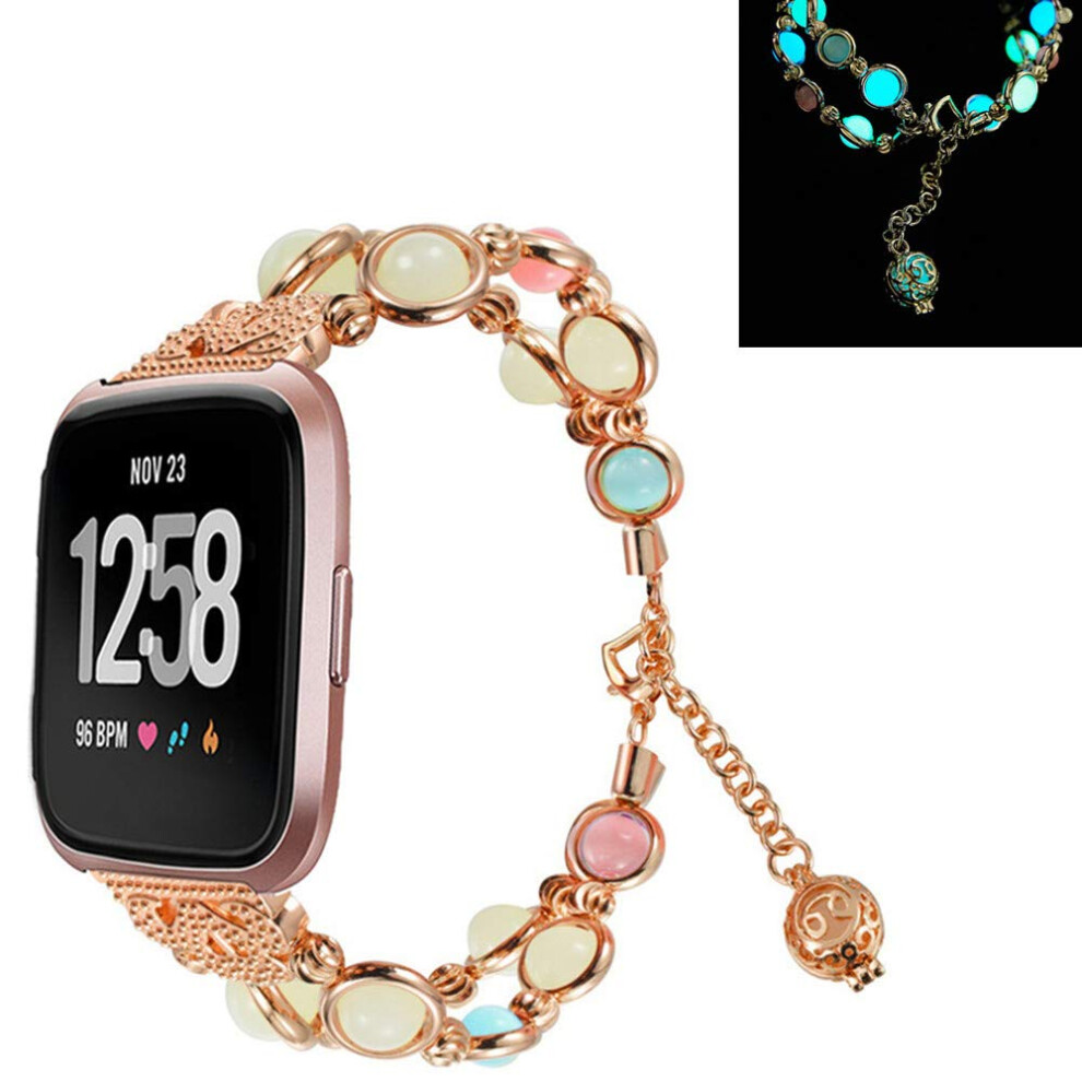 Replacement Band for Fitbit Versa 2 Rose Gold Jewelry Bracelet with Night Luminous Pearls Adjustable