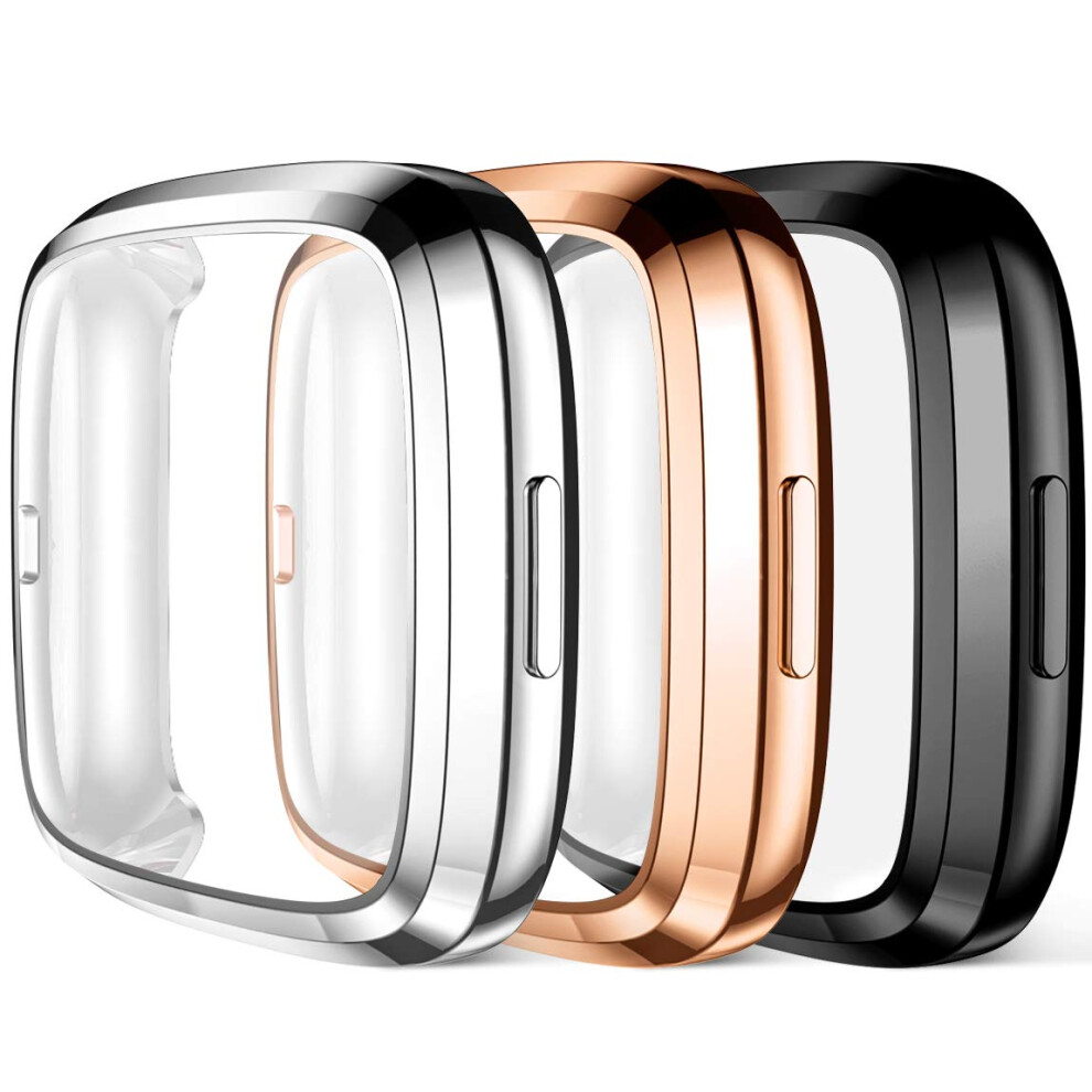 Screen Protector Case for Fitbit Versa 2, UltraThin Full Coverage, 3 Pack Black/Silver/Rose Gold