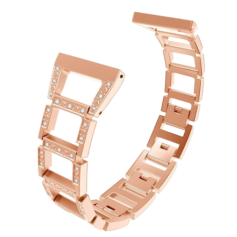 Luxurious Wristbands Compatible With Fitbit Flex 2, Elegant Design Stainless Steel Adjustable Strap Rhinestone Sparkle Bling Band Rose Gold For Women