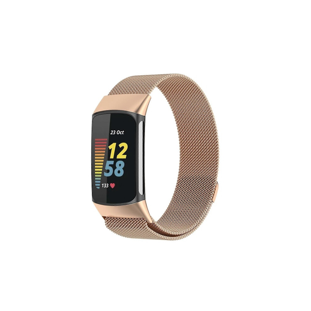 Milano Magnetic Metal Strap for compatible with Fitbit Charge 5 Pink gold