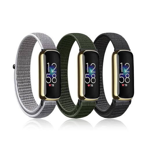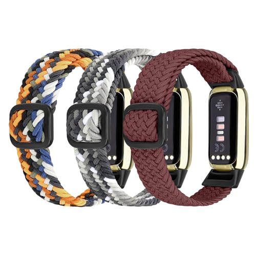 3 Pack Elastic Nylon Straps Compatible with Fitbit Luxe Strap, Nigaee Stretchy Adjustable Fabric Breathable Replacement Straps for Women Men