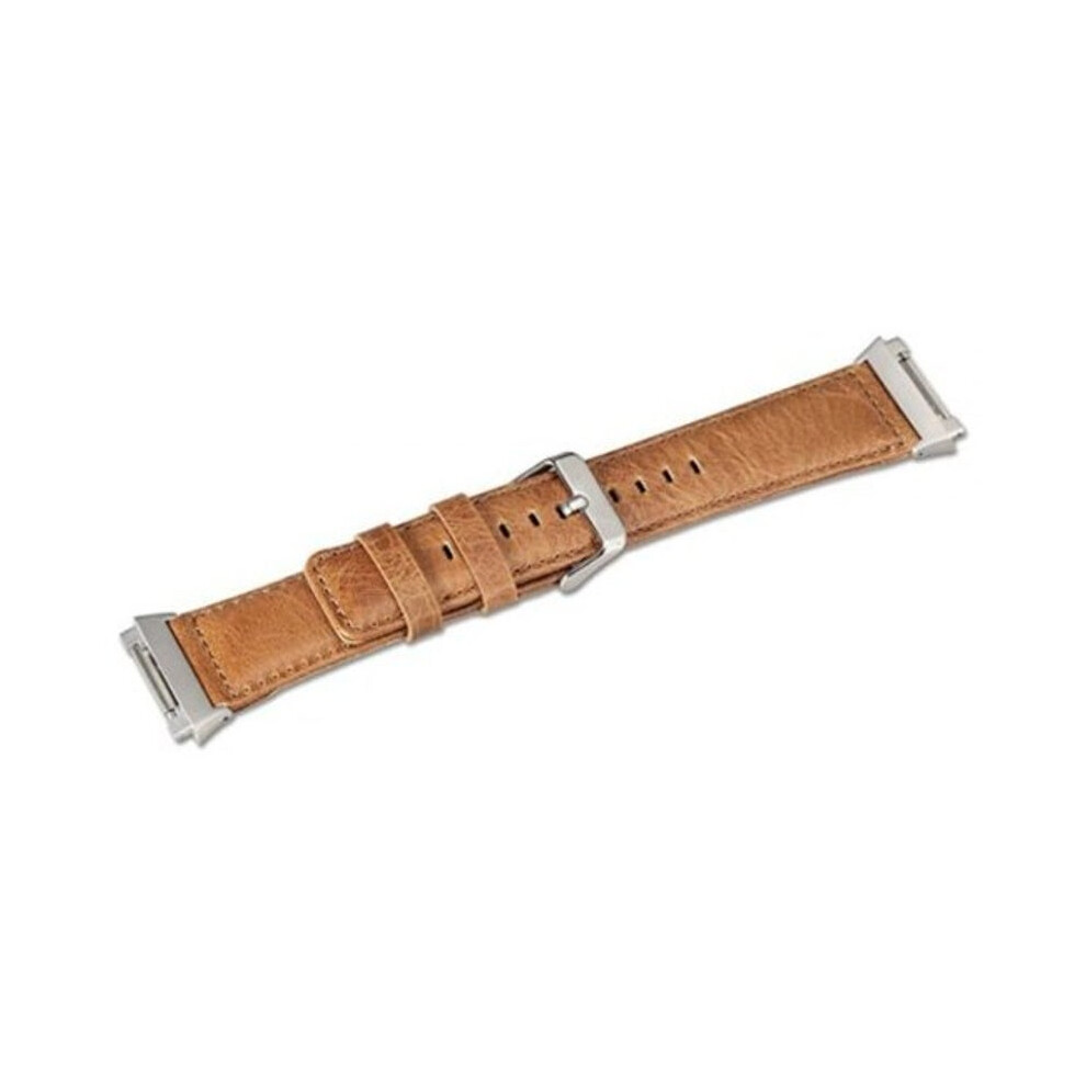Genuine Leather Replacement Strap With Metal Adapter For Fitbit Ionic Smart Watch Accessory Wristband Light Brown Watch Bands