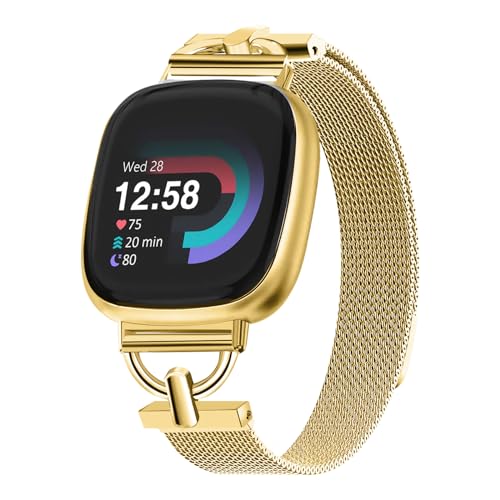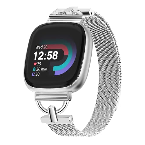 HAYONLIY Magnetic Straps Compatible for Fitbit Versa 4/Fitbit Versa 3/Fitbit Sense 2/Fitbit Sense, Mesh Stainless Steel Thin Strap, Adjustable Replacement Wrist band for Women Dressy