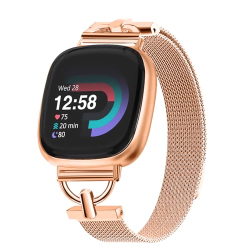 Faliogo Compatible with Fitbit Versa 3 Strap/Fitbit Versa 4 Strap/Fitbit Sense Strap, Adjustable Stainless Steel Metal Replacement Strap with Magnet Lock for Versa 4/Versa 3/Sense, Small Rose Gold