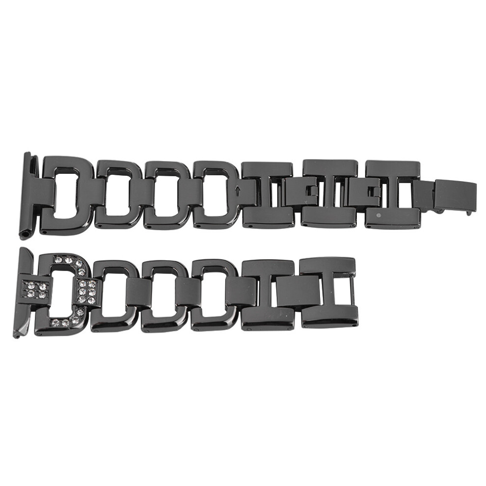 Decoration For FitbitBlack Stainless Steel Bracelet Women Inlay Rhinestones