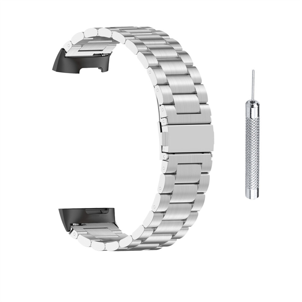 TenCloud Replacement Strap Compatible with Fitbit Charge 4 Straps, Metal Stainless Steel Bands Arm Band Wristband Straps Accessory for Charge 4/Charge 3/ Charge 3 SE Smart Watch (Silver)