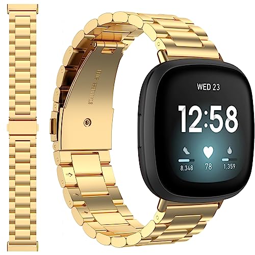 Miimall Metal Strap Compatible with Fitbit Versa 4/Fitbit Versa 3/Fitbit Sense 2/Fitbit Sense, Stainless Steel Band with Folding Clasp, Adjustable Replacement Bracelet Wristband, Gold