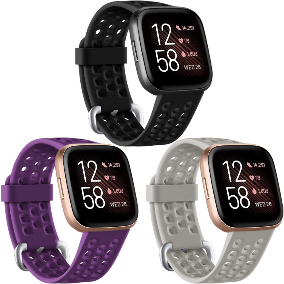Large Sport Strap 3 Pack Replacement Bands for Fitbit Versa 2 Black Gray Plum