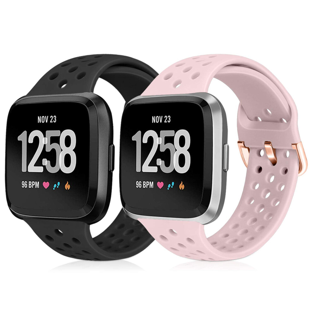 Replacement Band Breathable Silicone Strap for Fitbit Versa 2 Lite SE Black and Pink Sand