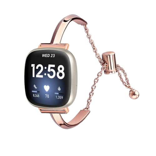 Watch Straps Smart Watch Replacement Bands Compatible with Fitbit Versa/Versa 2 Straps for Women Dressy Metal Bracelet Jewlery Wristband Rose Pink Replacement Strap (Band Color : Rose Gold)