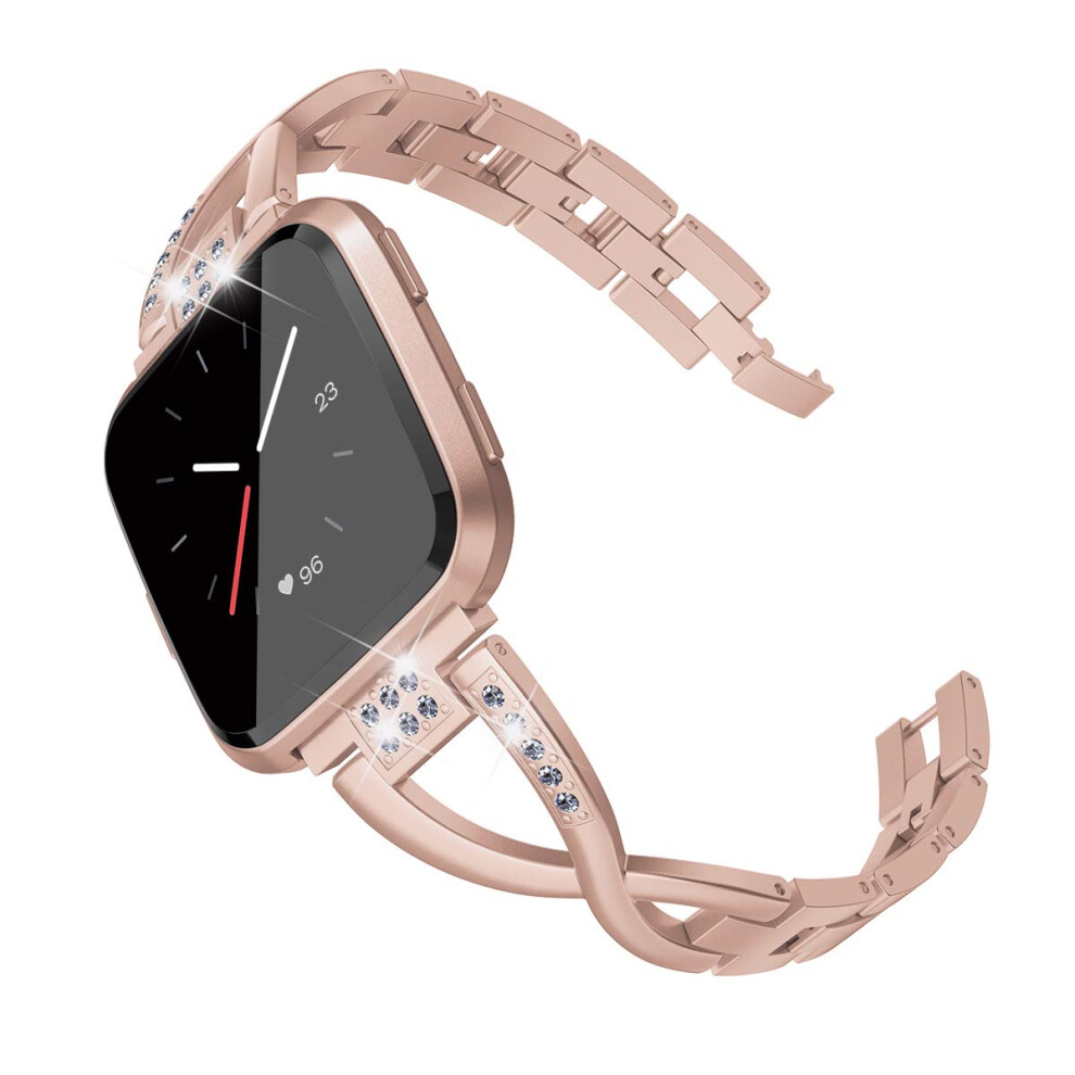 Wearlizer Strap for Fitbit Versa - Metal Rhinestone Band, No Tool Needed (Versa 2 Copper Rose)