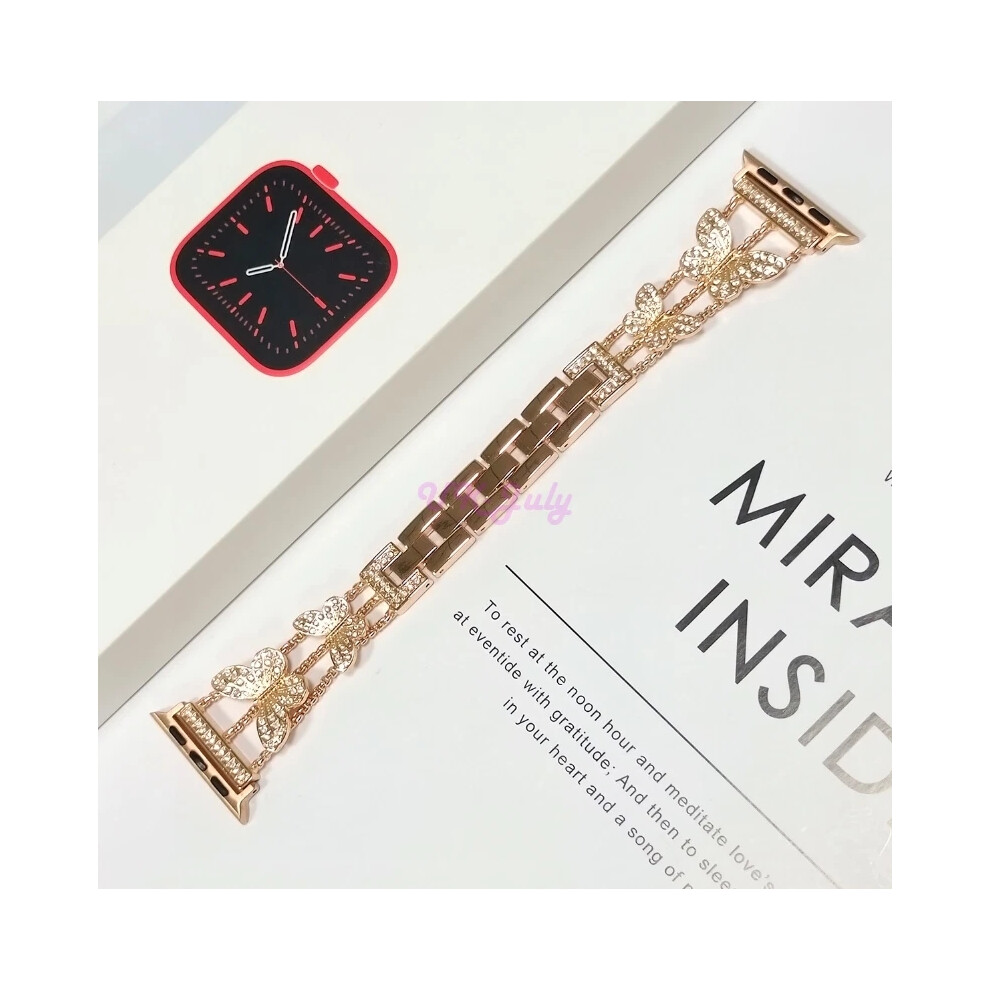 (i Watch 42/44/45/49MM, Rose Gold) Bling Watch Band Strap for i Watch Ultra Series 9/8/7/6 Fitbit Versa 2/3/4 22mm New