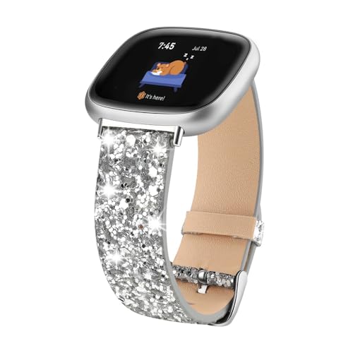Lcklill Compatible with Fitbit Versa 3/Versa 4/Fitbit Sense/Sense 2 Bands, Women Bling Glitter Leather Strap Smart Watch Accessorie Bands (Silvery)