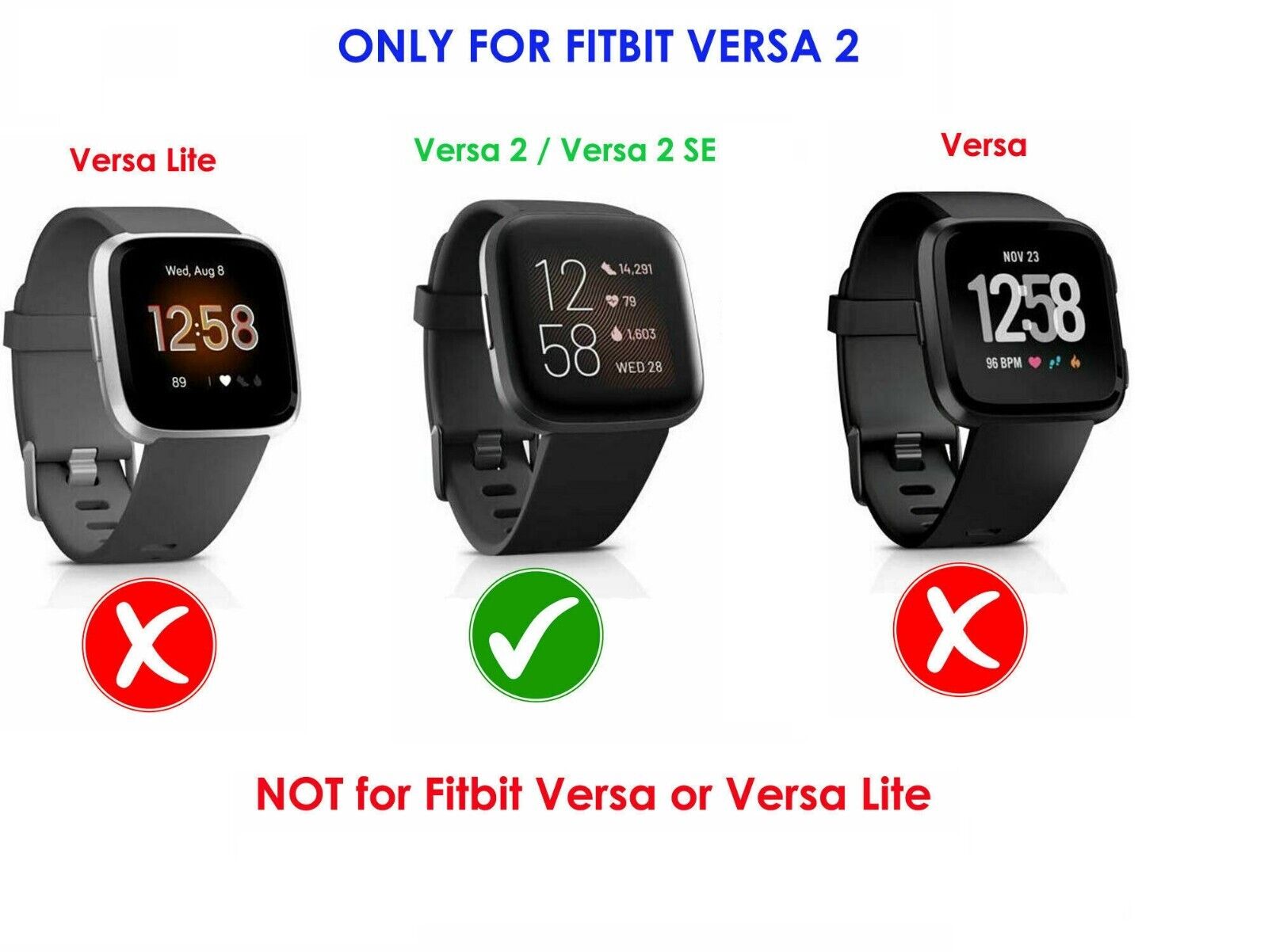 Happytop Women’s Watchband Compatible for Fitbit Versa/ Versa2/ Versa Lite Smart Watch, Lightweight, Comfortable, Adjustable, Resin Material (Q)