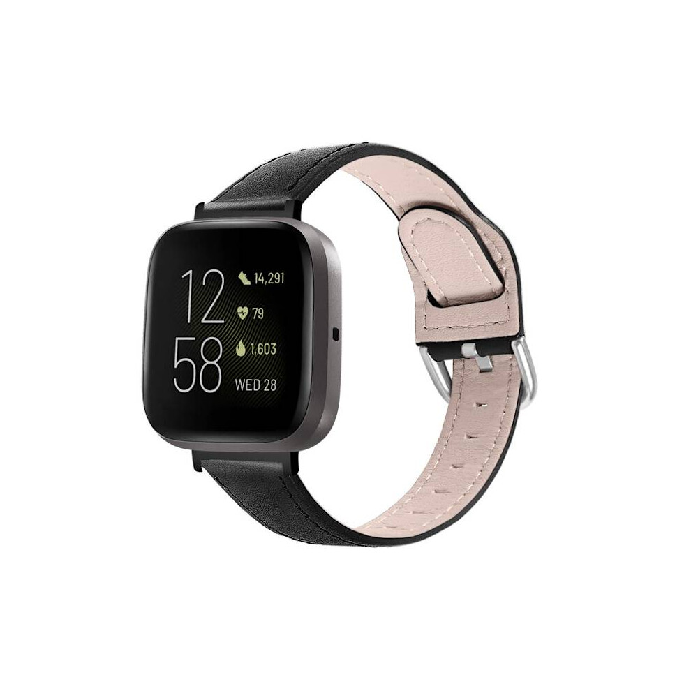 TOYOUTHS Leather Strap Compatible with Fitbit Versa 3/4/Sense 1/2, Slim Pink/Black Women's Watch Band