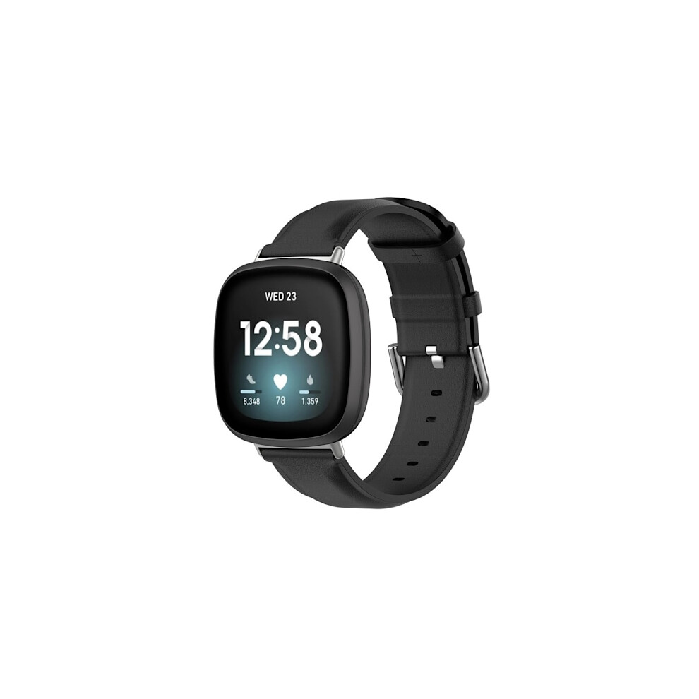 Genuine Leather Strap compatible with Fitbit Versa 3/Sense Black
