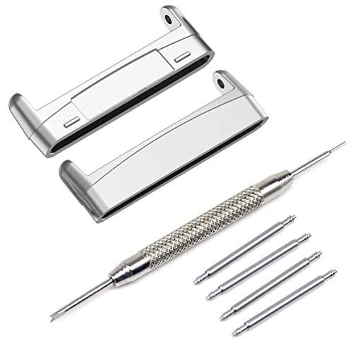 Sankel Connectors Compatible for Fitbit Versa 4/3/Sense 2/Sense Smartwatch Band Adapter,Stainless Steel Connectors+Watch Band Spring Bars Strap Link Pins+Spring Bar Tool (Silver-20mm Pins)