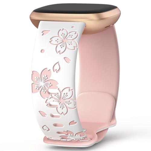 Yoohoo Floral Engraved Straps - Compatible with Fitbit Versa 3/4 & Sense 2 Watches - Women's Cute Flower Replacement Bands, Soft Silicone Sport Strap