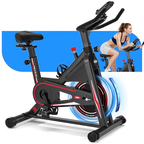 DMASUN Indoor Exercise Bikes for Home Gym Use with LCD Display, Spin Bike with Tablet Holder & Comfortable Seat Cushion, Super Quiet Fitness Bike for Home Cardio Workout with Heart Rate Sensor