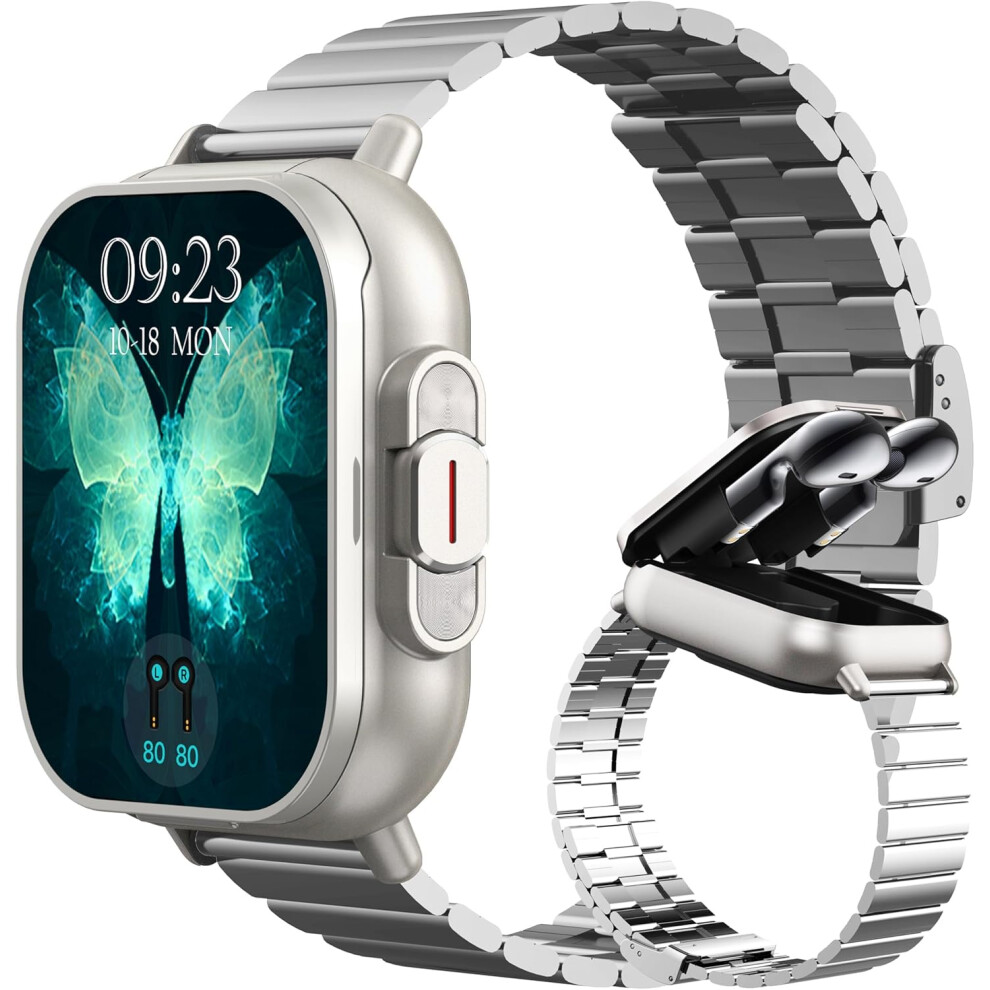Chronus Smart Watch with Earbuds, Make/Answer Calls Wireless Earphones, Fitness Watch Heart Rate Monitor Blood Pressure Sleep Tracker Step Calories