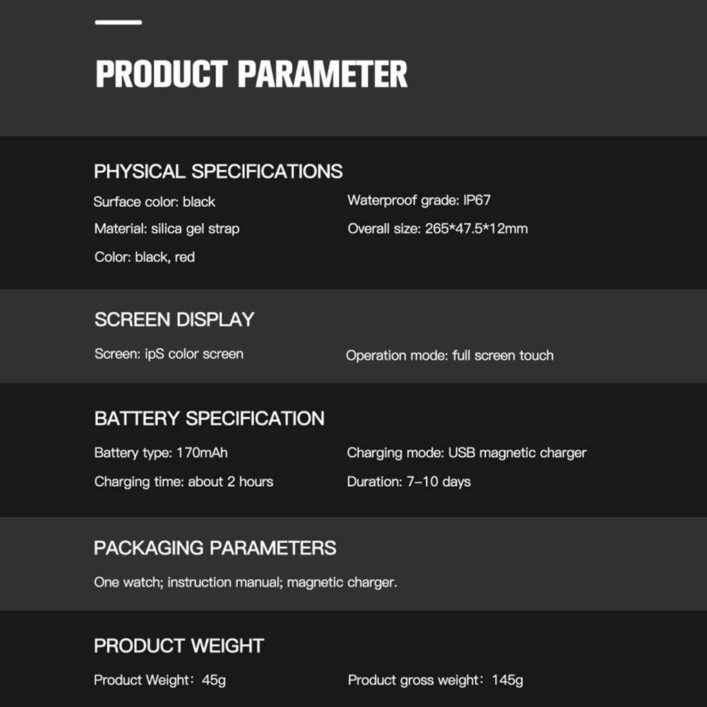 (Black) Smart Watch IP67 Swimming Waterproof Smartwatch Fitness Tracker Heart Rate Monitor Smart Watches for Men Women