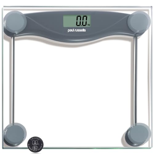 paul russells Digital Bathroom Scales, Bath Scales, Body Weight, Weighing Scale for Fitness with High Precision Sensors, Accurate Weight Machine for Humans (st/lb/kg) 28X28cm150KG Wide Platform GREY