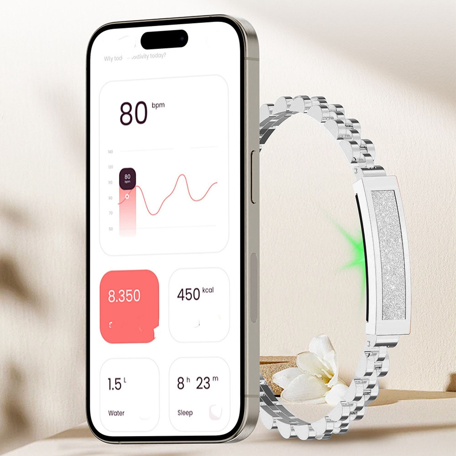 Deskium Fitness Tracker Smart Bracelet S2 For Women, With Metal Band, Heart Rate & Sleep Monitor, Silver, 0.4 In Case