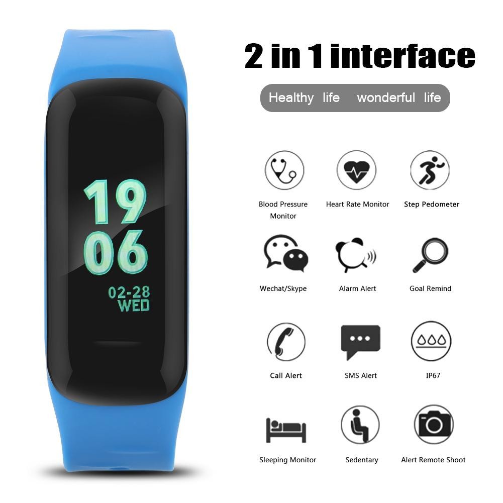 115plus Bluetooth Smart Watch Heart Rate Blood Pressure Monitor Fitness Tracker Bracelet, Blue