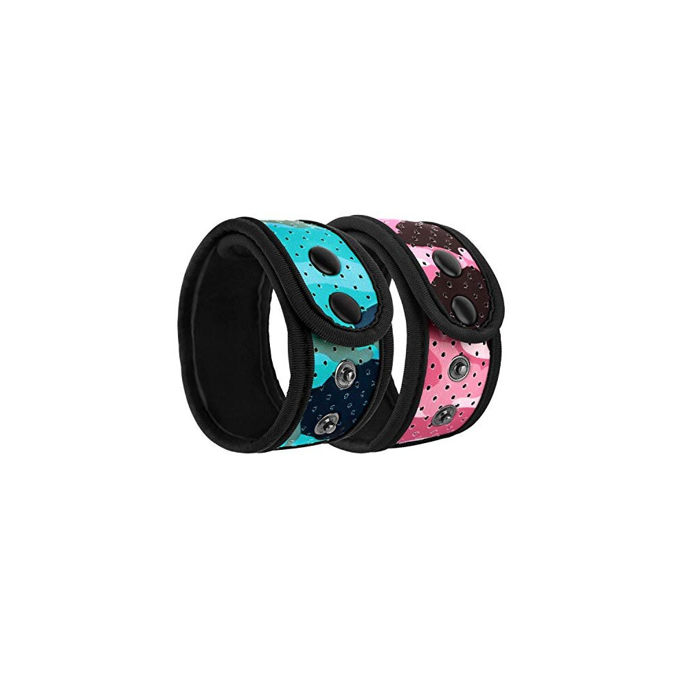 MoKo 2-Pack Sweatproof Ankle Strap Fit Fitbit Luxe/Inspire 2/HR/Inspire/Charge 5/4/3/2/Alta/Alta HR/Flex 1/2/Garmin, Adjustable Fitness Tracker Ankle Band with Mesh Pouch - Blue + Pink