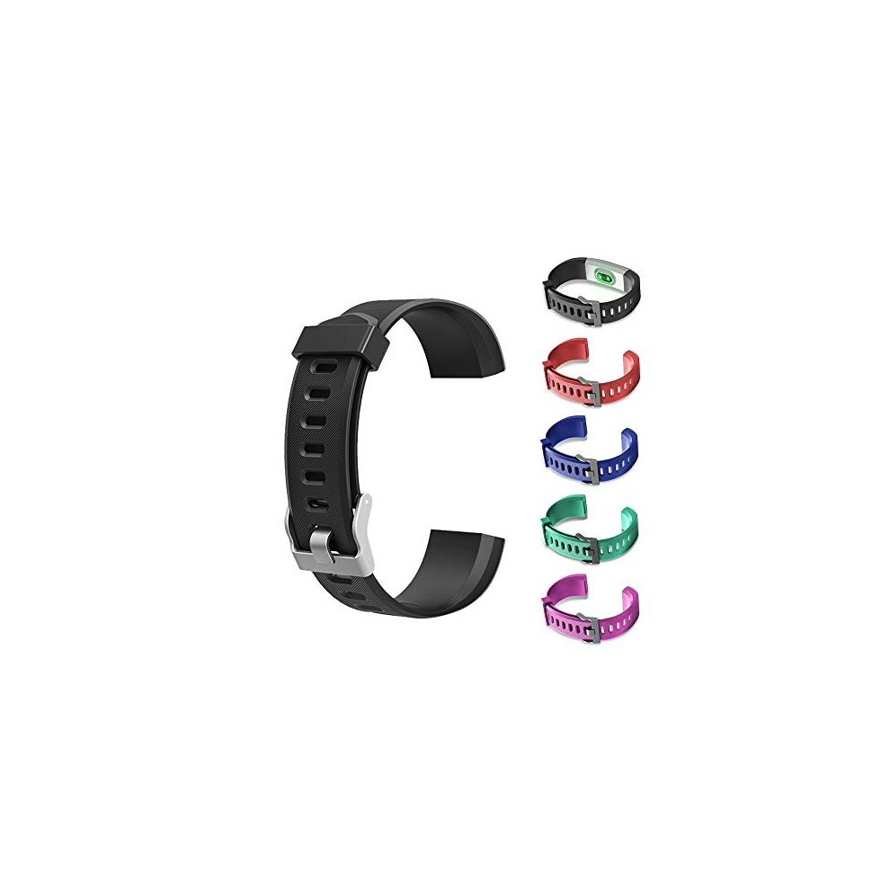 (Black) Replacement Silicone Watchband Wrist Strap Band for ID115PLUS HR Fitness Tracker