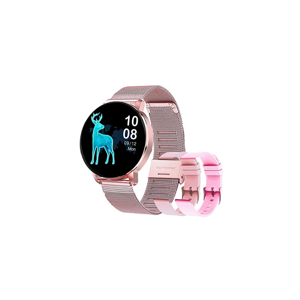 Women's Smart Watch Bluetooth Phone Calls for Android iOS 100+ Sport Fitness Tracker 1.32" HD Female Smartwatch Heart Rate Sleep Monitor Diamond Ladies Smartwatch Rose Gold Steel,2 Watch Straps