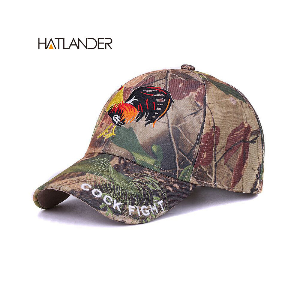 [HATLANDER]Outdoor camo embroidery COCK baseball caps for women mens fitted fishing sun hats gorras 6panel camouflage sports cap