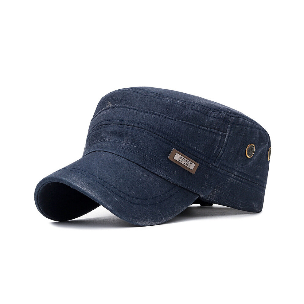 Vintage Washed Cotton Military Caps Flat Top Baseball Cap Adjustable Fitted Thicker Cap Sun Protection Men Women Cadet Army Cap