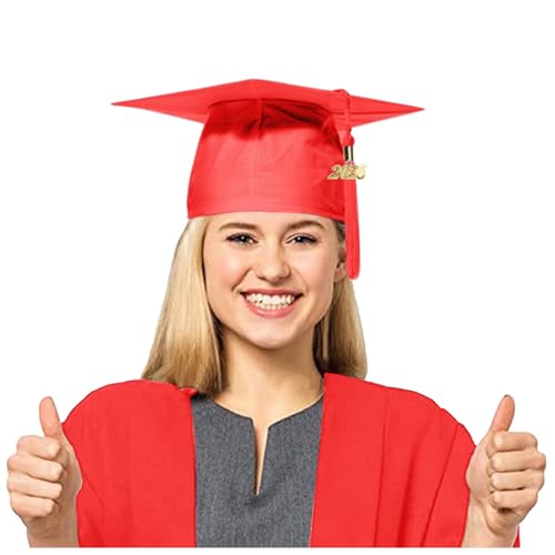 Graduation Cap Hat For Adults 2026 Adult Men And Women Fitted Graduate Caps Hats Kids Fancy Dress Accessory Photo Props High School University College Ceremony Presents (Red,One Size)