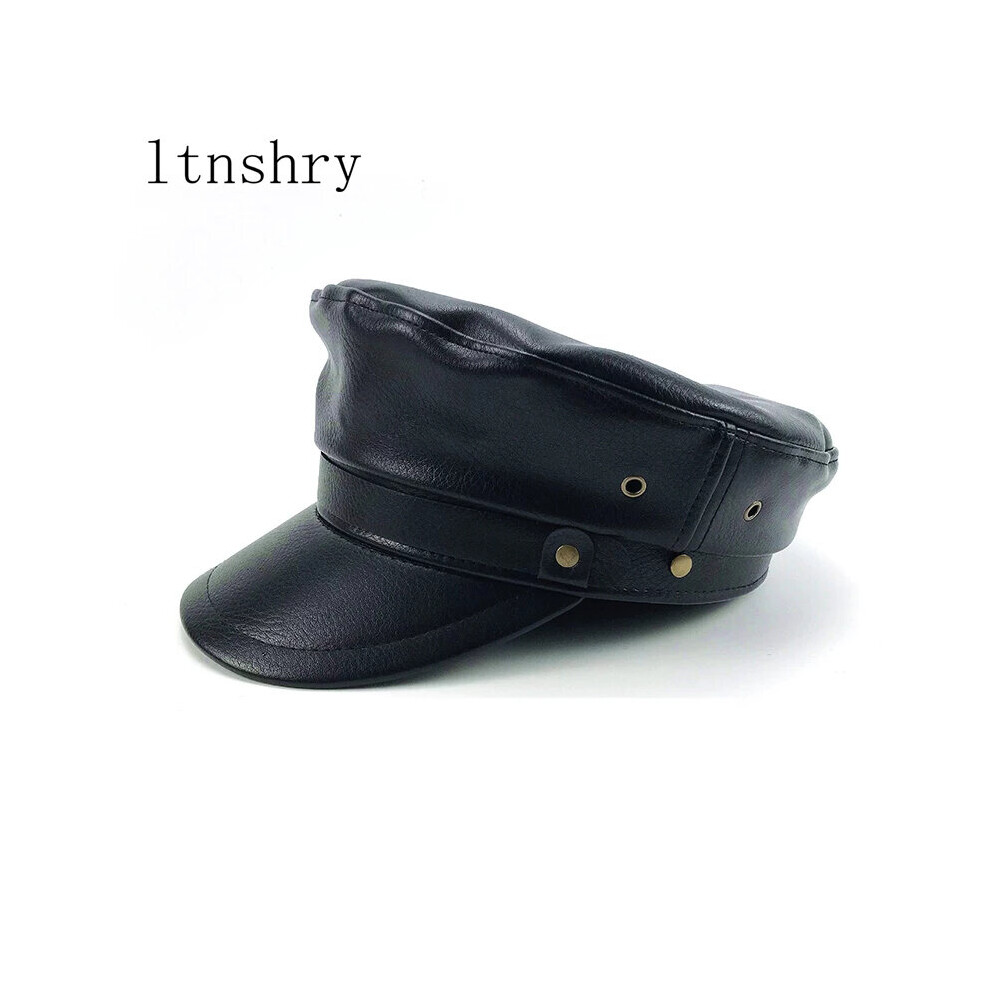 NMCNXSD Leather Cap Men/Women Leather Navy Hats Unisex Streetwear Fitted Black Caps With Belt Outdoor(Svart,XXL 59 60cm)