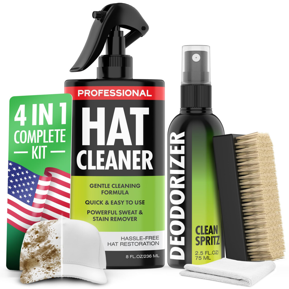 4-in-1 Professional Hat Cleaning Kit - Removes Dirt and Stains Gentle Hat Cleaner for Baseball Caps Fitted Cowboy & Felt Hats Complete Hat Cl
