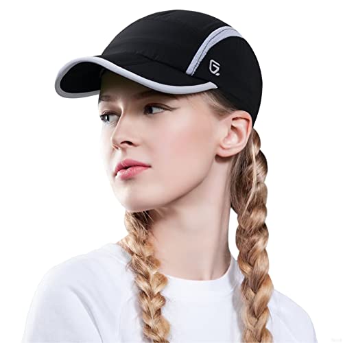 GADIEMKENSD Women's Foldable Light Cap Quick Dry Ultra-Thin Unstructured Tech Running Hat Reflective UPF 50+ Baseball Caps Cooling Ponytail Hats Fitted for Beach Tennis Travel Hiking Golf Black